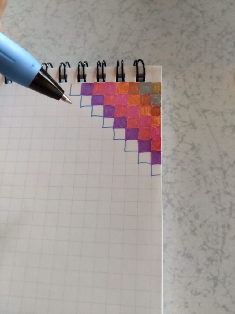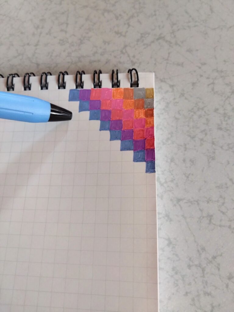 イオンの文房具店で「サラサクリップ0.5デコシャインカラー」を衝動買いし、方眼ノートで塗り絵してみることにした。