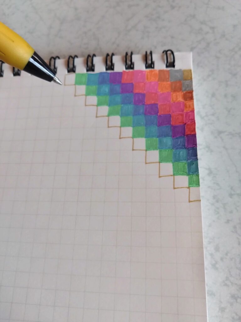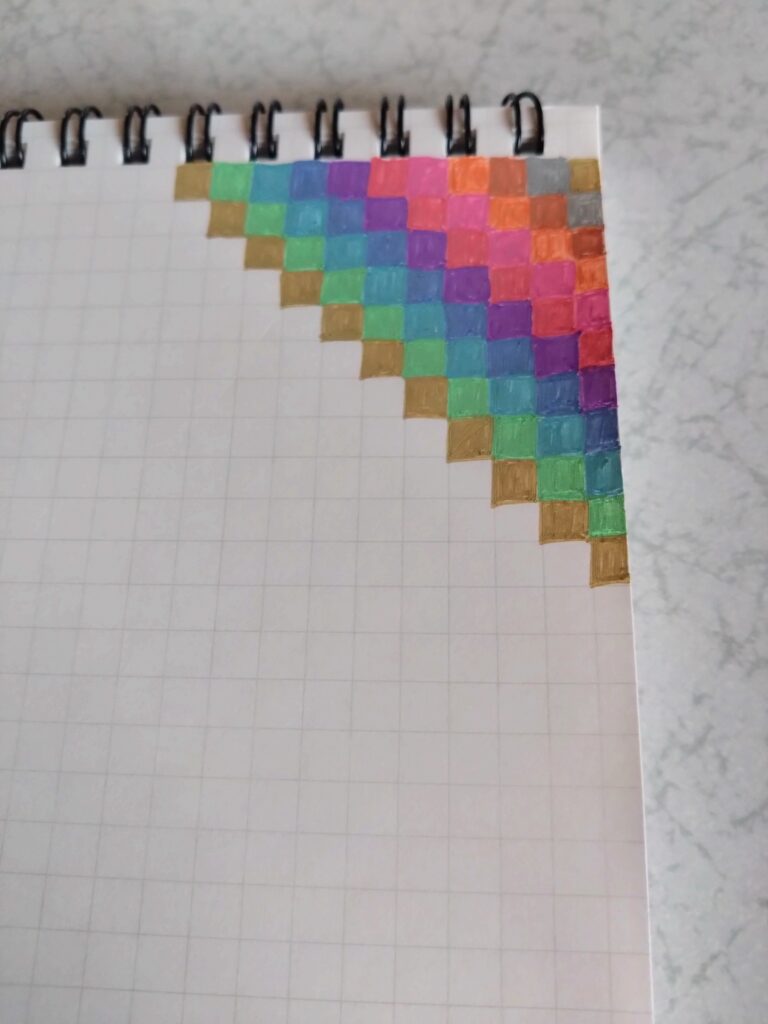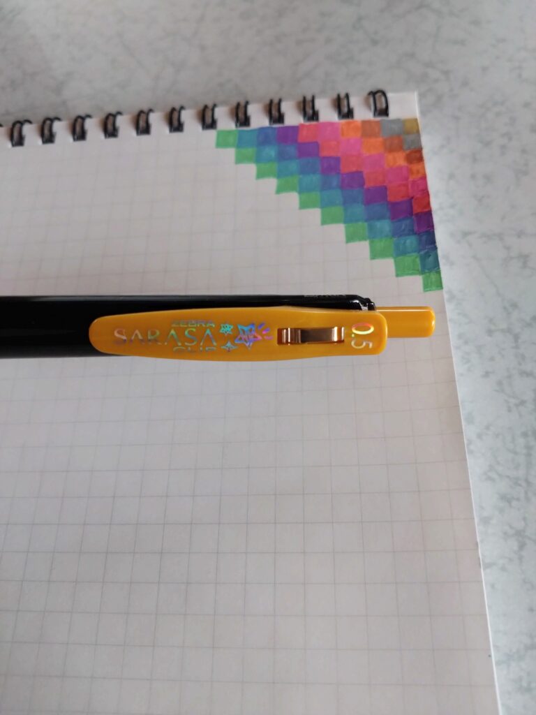イオンの文房具売場で「サラサクリップ0.5デコシャインカラー」を衝動買いし、方眼ノートで塗り絵をしてみることにした。