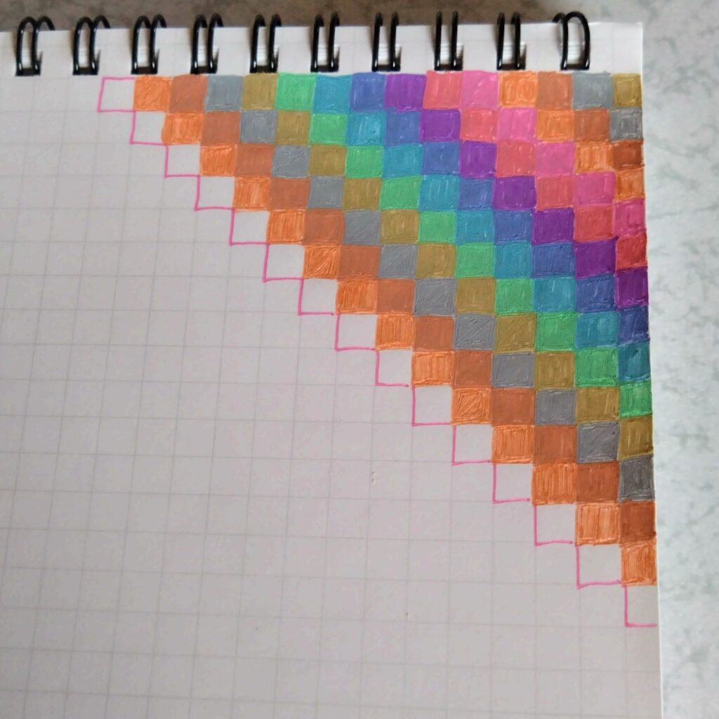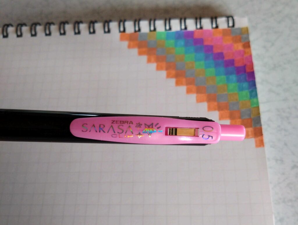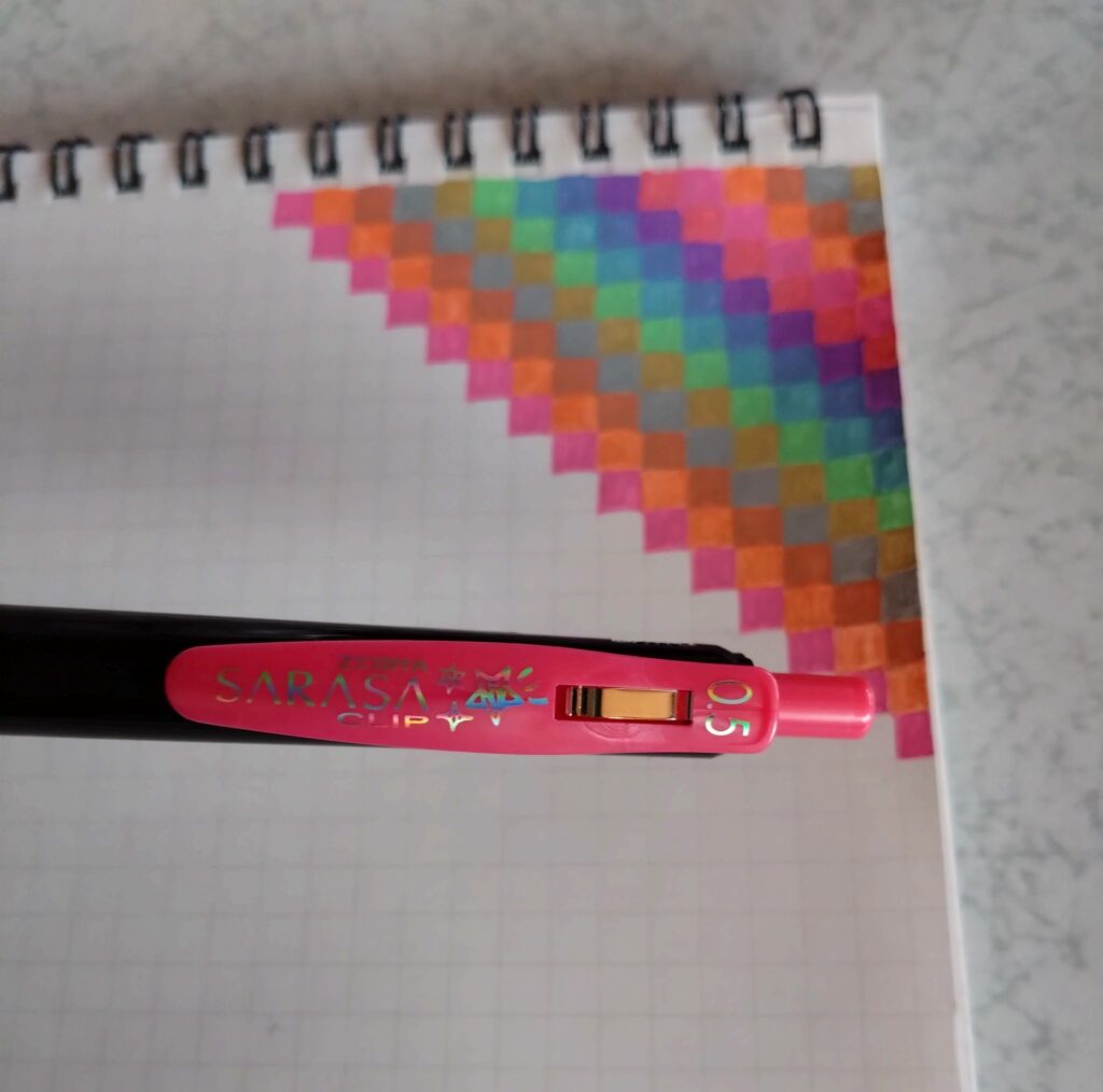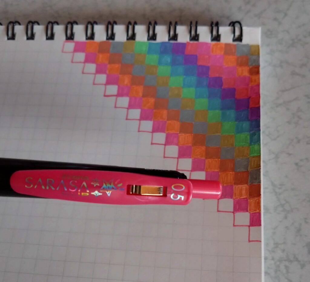 イオンの文房具売場で「サラサクリップ0.5デコシャインカラー」を衝動買いし、方眼ノート塗り絵を始めた。